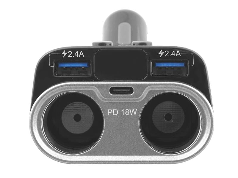 Rozdzielacz zapalniczki samochodowej najwyższej jakości marki LTC. Adapter umożliwia rozdzielenie zasilania jednego gniazda zapalniczki na 2 gniazda USB-A, gniazdo USB-C oraz dwa gniazda zapalniczki.