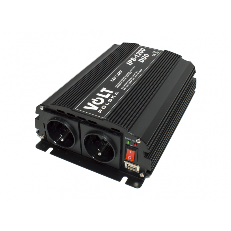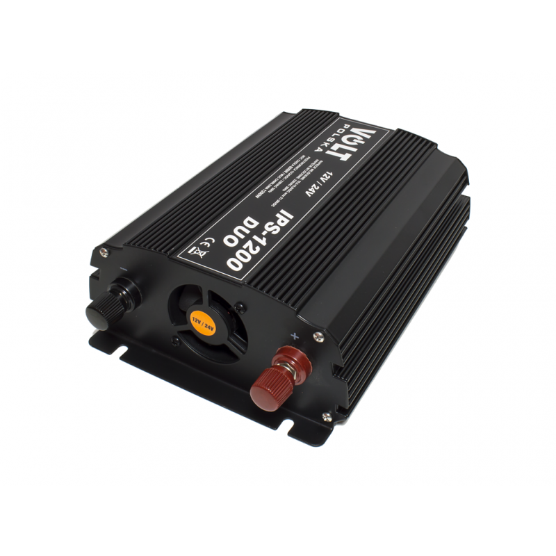 Elektroniczna przetwornica IPS 1200 DUO służy do zasilania urządzeń elektrycznych wymagających napięcia przemiennego 230V z akumulatorów i instalacji samochodowych o napięciu stałym 12V lub 24V. Doskonale sprawdza się w pojazdach i w miejscach gdzie nie ma możliwości bezpośredniego podłączenia do sieci energetycznej.