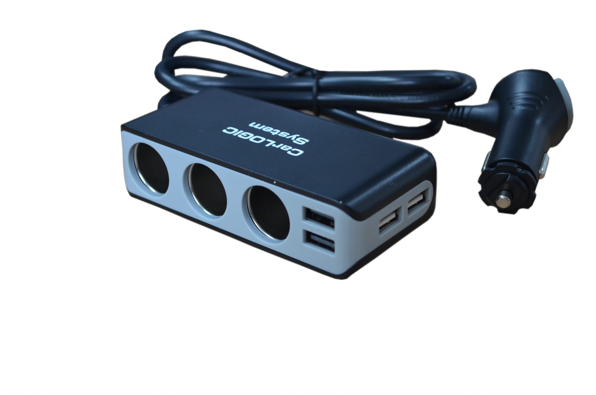 Najwyższej jakości, kompaktowy rozdzielacz zapalniczki samochodowej. Trójnik umożliwia rozdzielenie zasilania z jednego gniazda na kilka urządzeń zasilanych za pośrednictwem gniazda zapalniczki samochodowej. Do rozgałęziacza można podłączyć praktycznie wszystkie urządzenia elektroniczne, które korzystają z zasilania z gniazda zapalniczki samochodowej 12 / 24 V DC, takie jak: zasilacze do laptopów, TV, odtwarzaczy MP3, ładowarki do telefonów, tabletów, itp. Urządzenie jest wyposażone w trzy niezależne od siebie gniazda zapalniczki. Rozdzielacz posiada woltomierz 12/24V który znajduje się we wtyczce . Dodatkowo są dwa gniazda USB po 2,4A i dwa gniada USB po 1,0A .