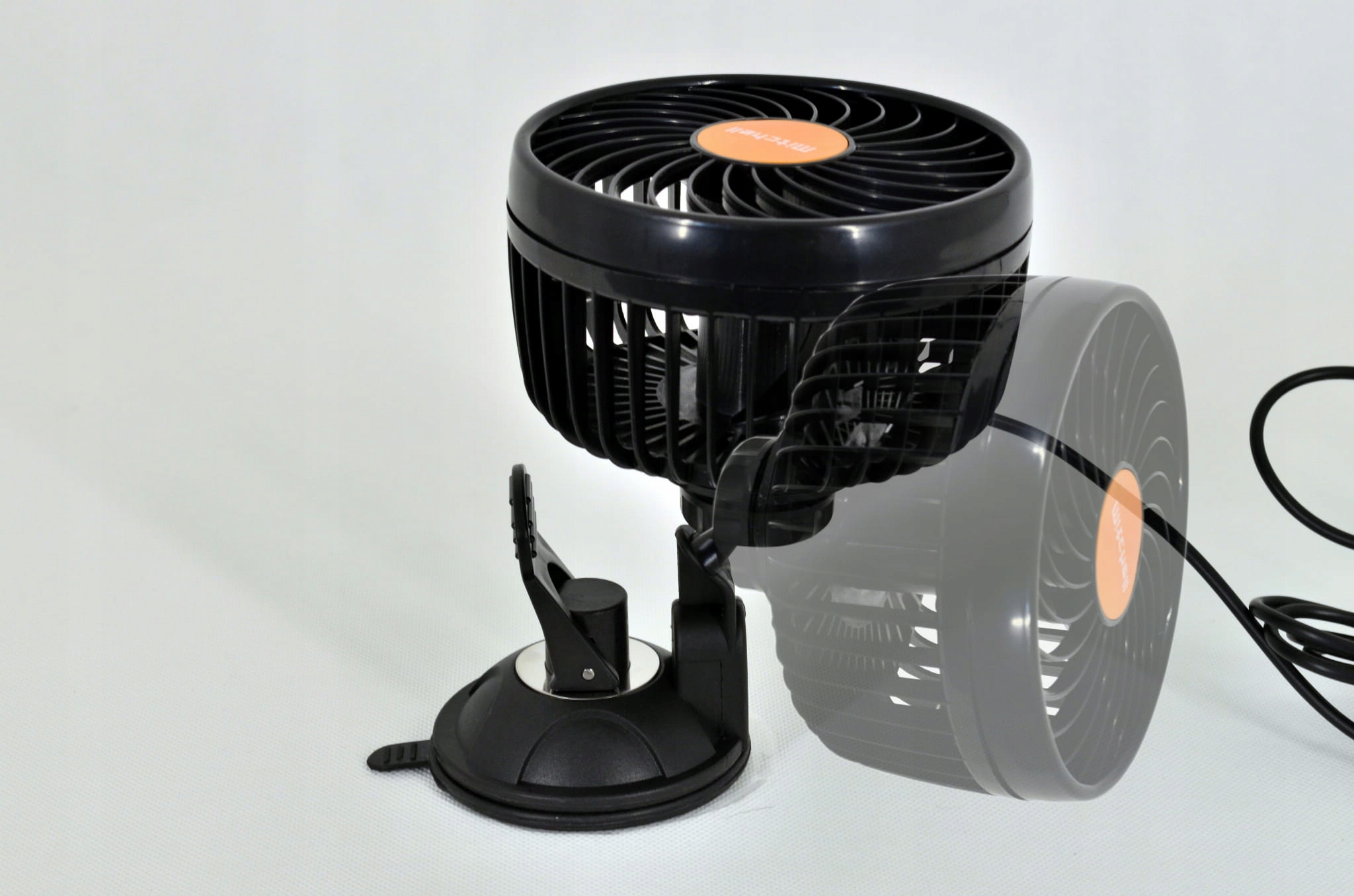 WENTYLATOR SAMOCHODOWY NA PRZYSSAWKĘ MOŻE BYĆ UMIESZCZONY NA SZYBIE JAK I NA PANEL SAMOCHODU.