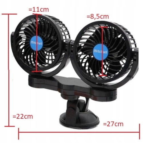WENTYLATOR SAMOCHODOWY PODWÓJNY 2x4" 12V