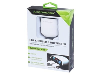 WOLTOMIERZ 8-30V Z ALARMEM-ŁADOWARKA 2XUSB 3,4A