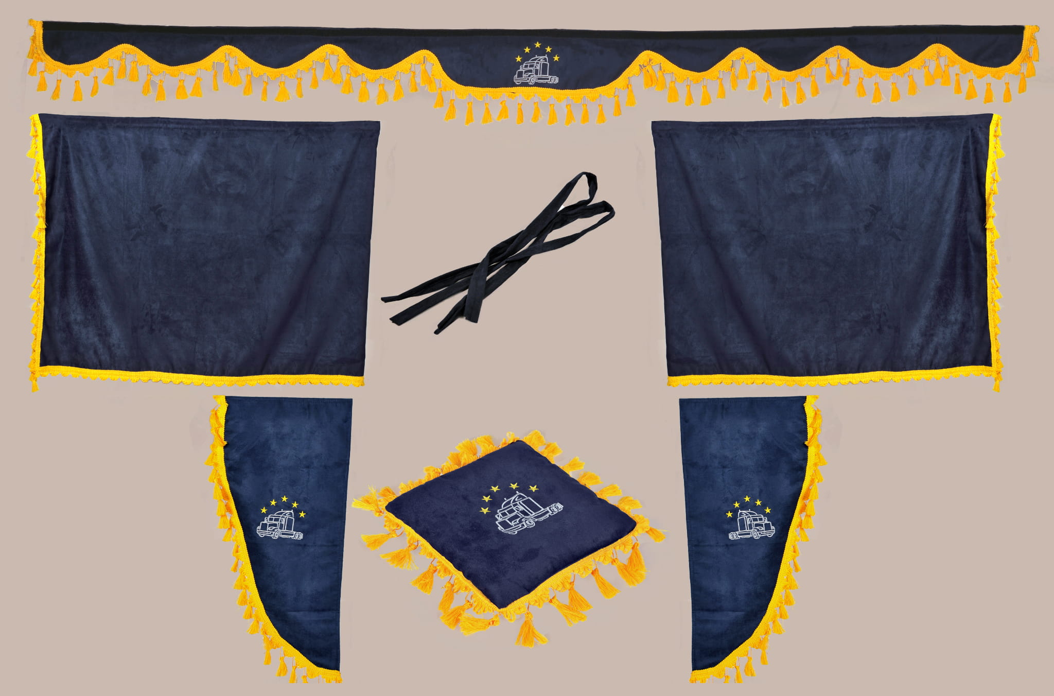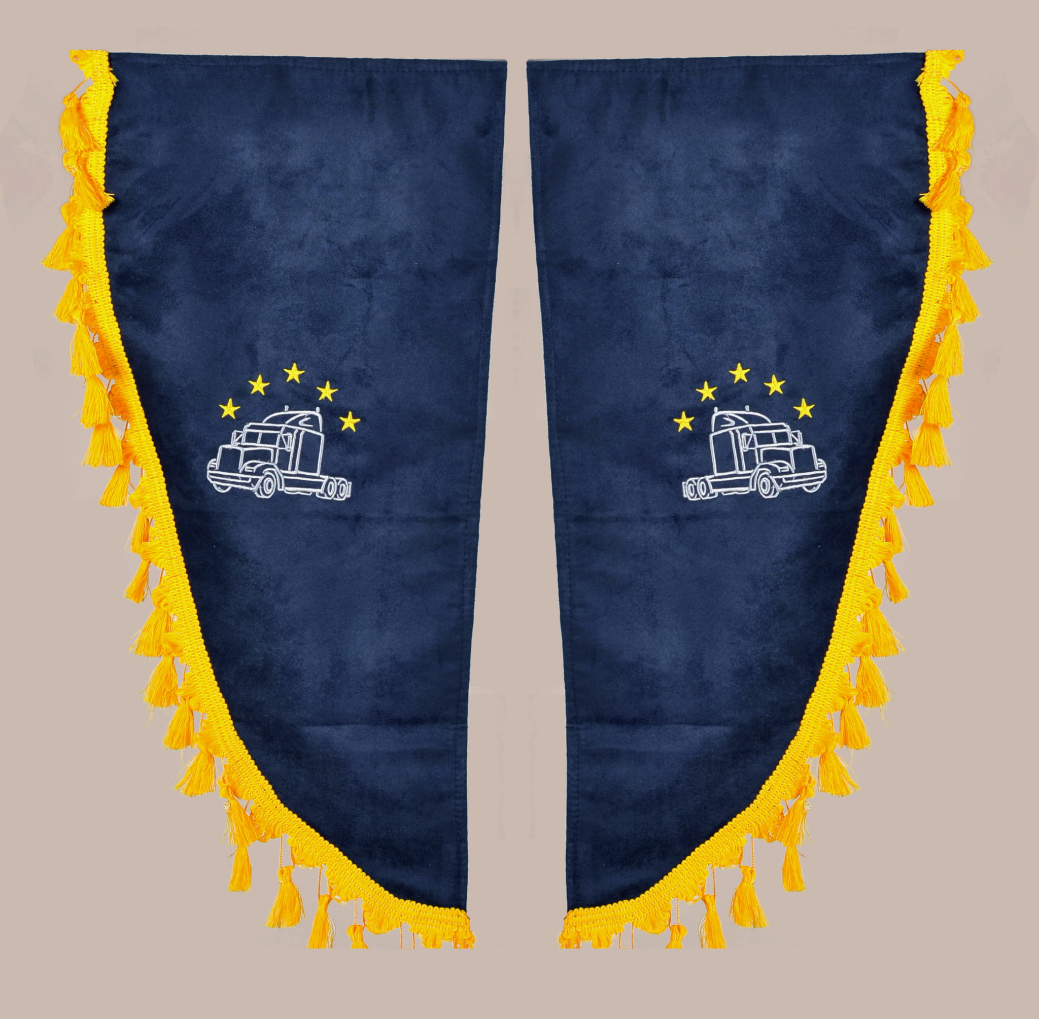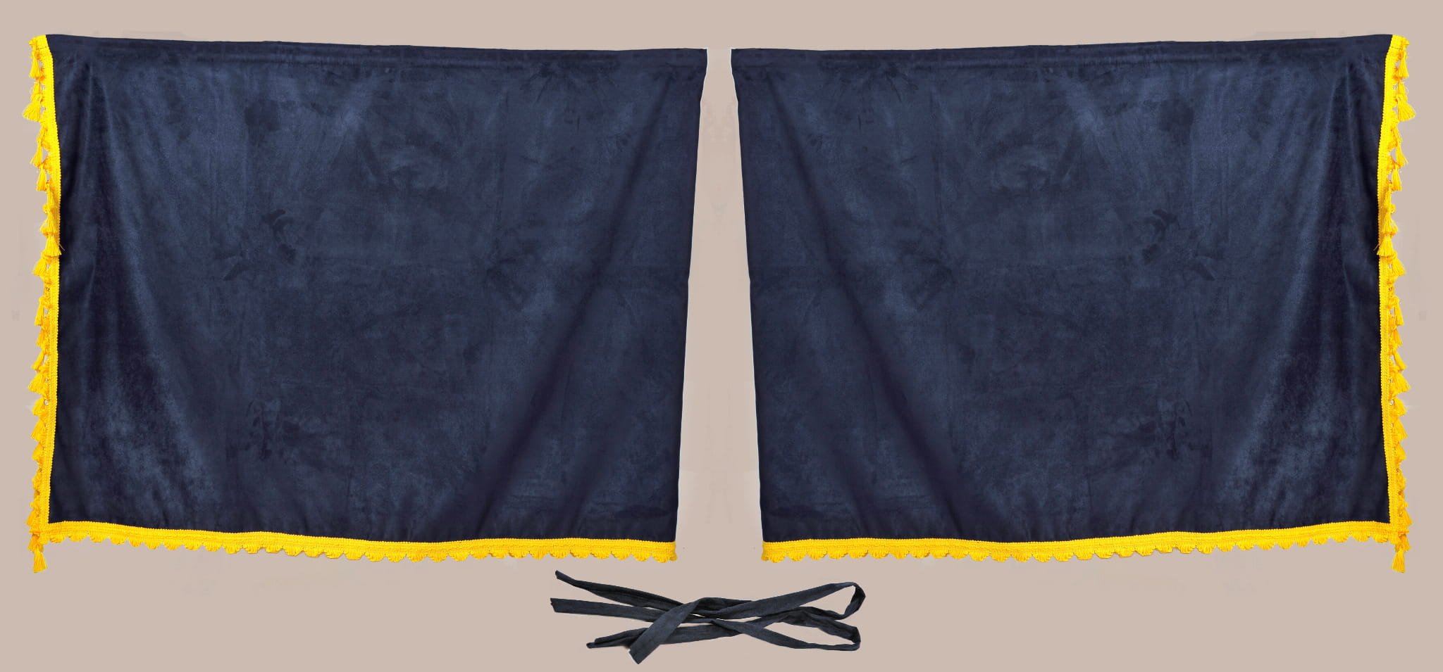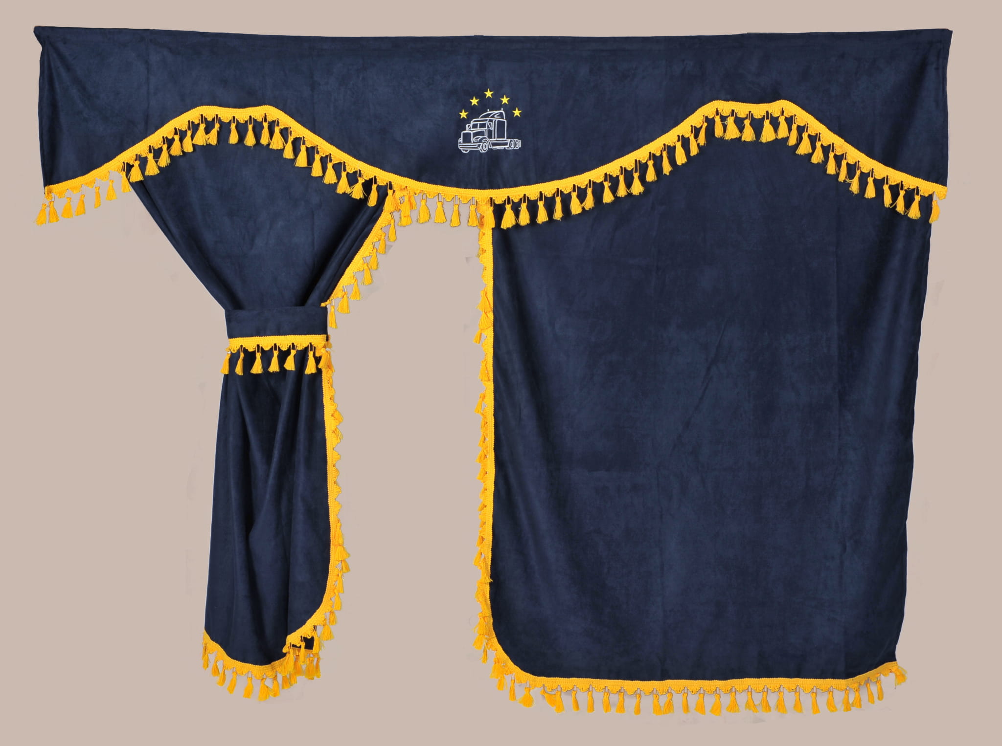 ZASŁONY KABINY GRANATOWE Z FRĘDZLAMI
